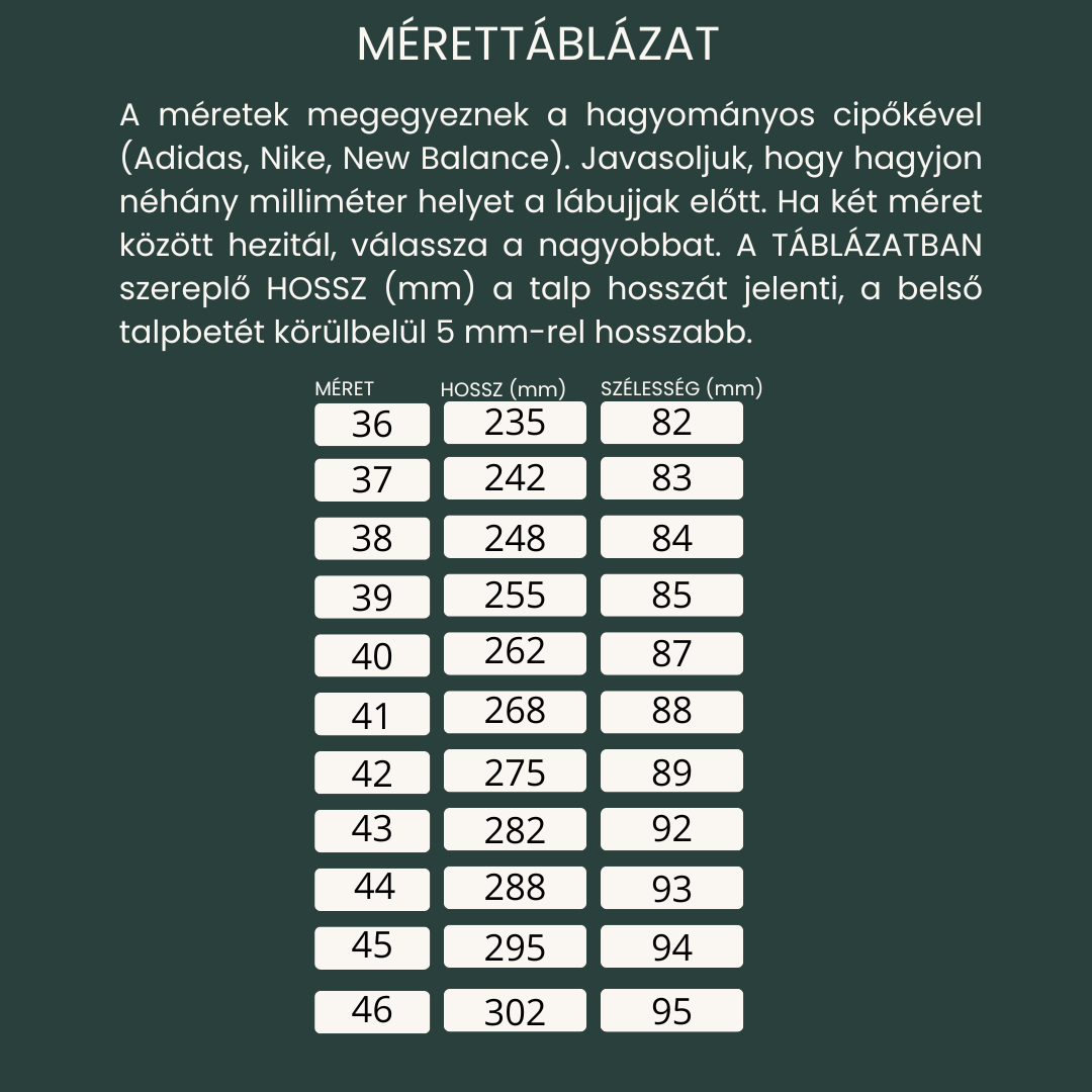 A lábhoz simuló forma maximális kényelmet és kellemes, laza járást biztosít.