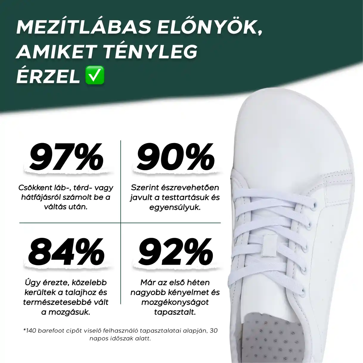 A munkám miatt gyakran napi 12 órát is állnom kell, így rendszeresen szenvedtem ízületi fájdalmaktól. Az ortopéd orvosom javasolta, hogy próbáljam ki ezeket a mezítlábas cipőket – a változás szembetűnő volt. Egyedül azt tanácsolnám, hogy az elején csak rövidebb ideig viselje őket, hogy az izmok és ízületek fokozatosan alkalmazkodjanak.