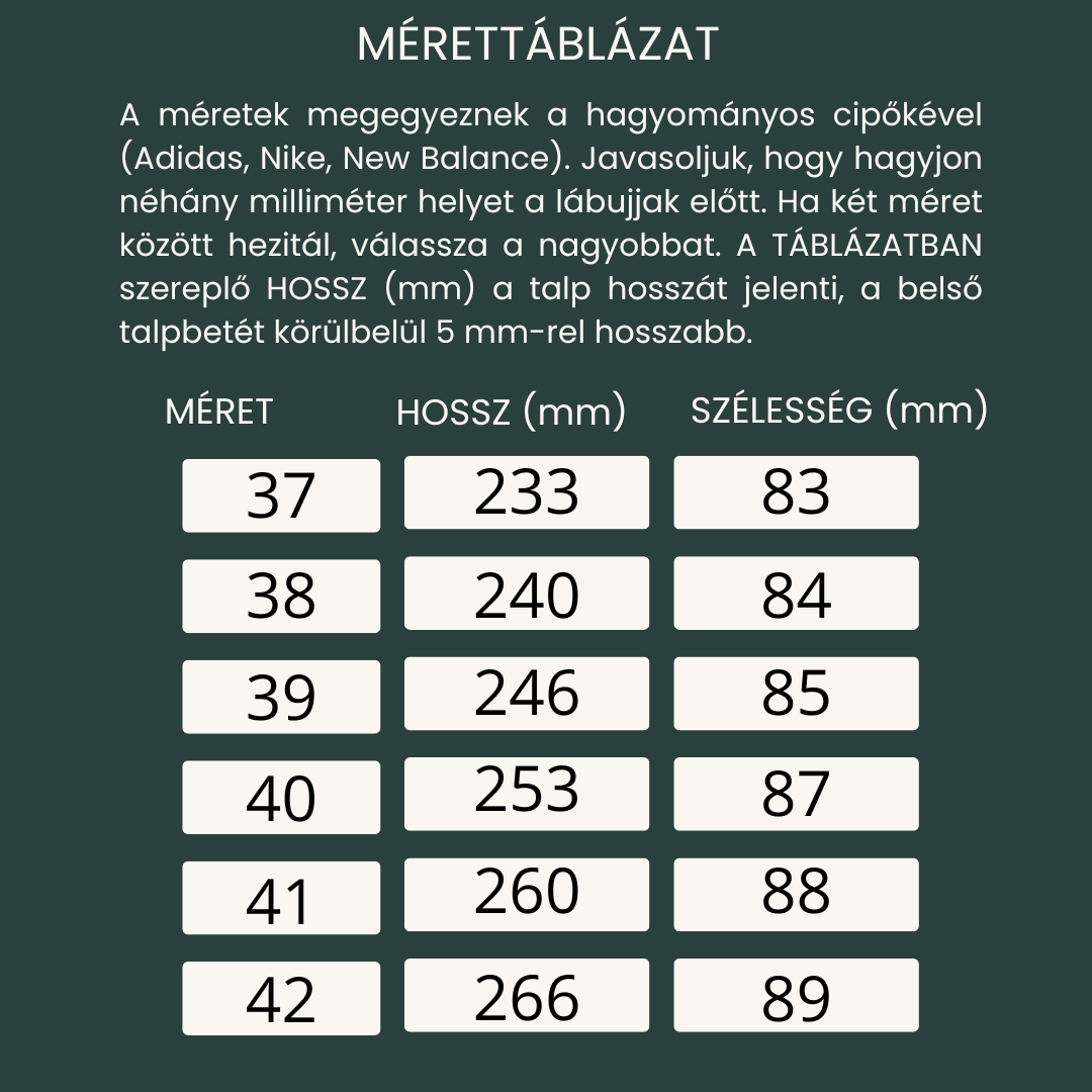 A lábhoz simuló forma maximális kényelmet és kellemes, laza járást biztosít.